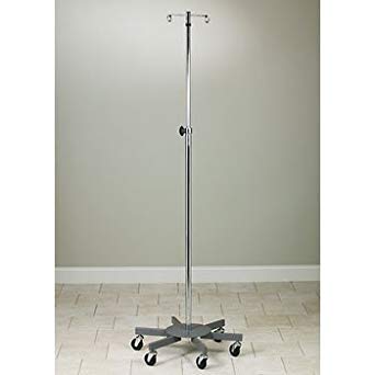 Clinton IV-33 IV Pole, 6 Leg Heavy Base with 2 Hooks.