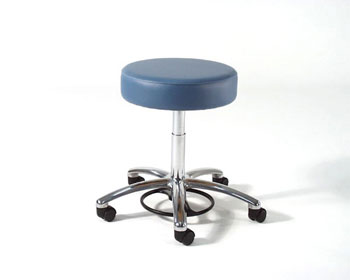 Physicial stool with 360 degree foot release and polished aluminum base. Standard height 17″ to 22″.