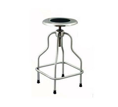 UMF Medical 6701 stainless steel stool with tubular foot rest and revolving seat. Non-slip material flush mounted into recess of stool seat. Seat height adjustment via threaded stem. Welded foot rest. Non-slip rubber tips on stool legs. 3 year limited warranty