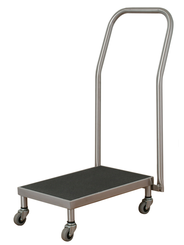 UMF Medical 8381 transport cart with push handle (for use with SS8380 stackable foot stools). Stainless steel, all-welded construction. Corrugated rubber top. 2” (5.1cm) swivel casters. Comes with a 3 year limited warranty.