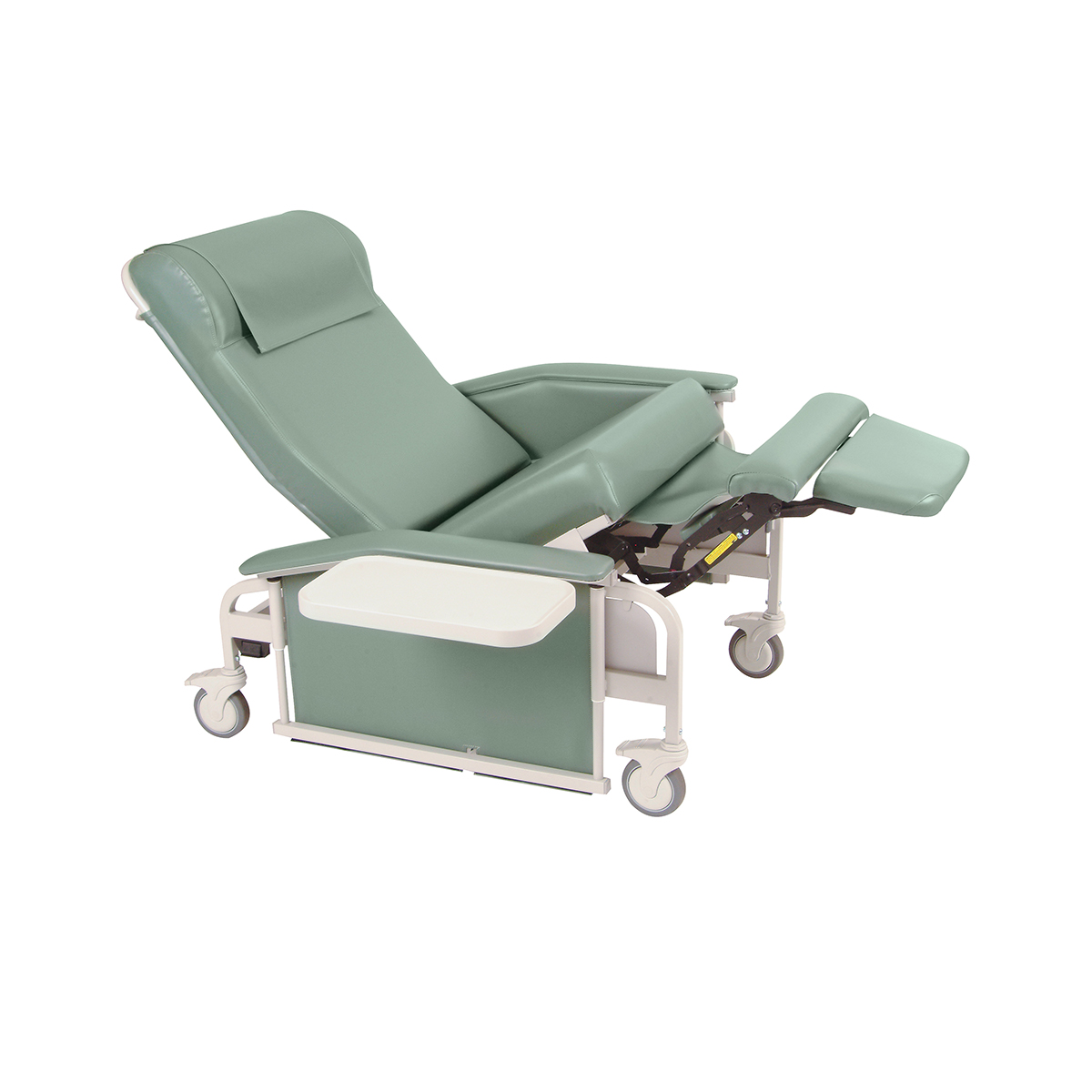 Each chair in the CareCliner Series features a standard Trendelenburg release with handle accessible from either side. It also has a built-in ergonomic headrest, adjustable elastic bands on the back frame that provide exceptional comfort and an elastic open seat base. All of these features combine to create the ultimate in comfort, durability and value. For use in Dialysis, Oncology, Acute Care & other clinical environments.